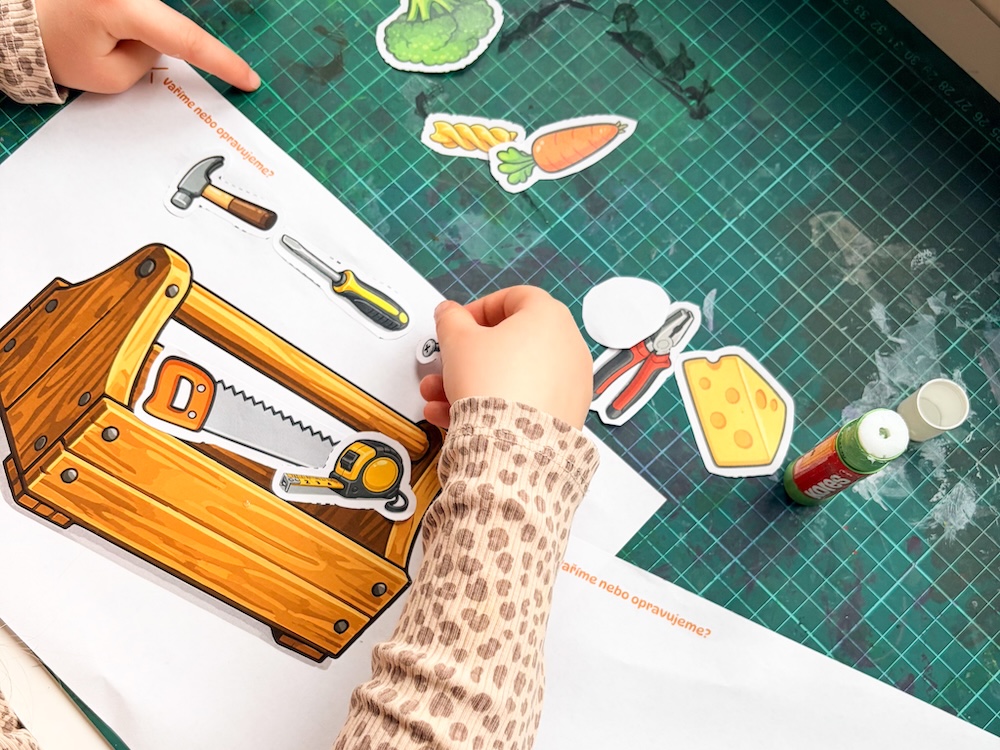 Roztřiď věci do správných kategorií. Co patří do kuchyně a co do dílny? Zábavné třídění pro nejmenší.
